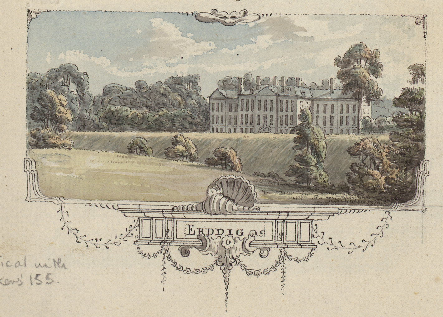 In 1776, Philip Yorke (1743-1804) observed that ‘running … into Welsh Antiquities’ was the result of ‘a promise I made to Mr. Pennant, to investigate those of my neighbourhood’.1 By the mid-1770s, Yorke was the owner of Erddig Hall [fig. 1] just outside Wrexham, the starting point for this manuscript tour, as well as for several of his longstanding research interests (Wat’s Dyke, for example, runs through Erddig Park). His correspondence with Thomas Pennant in the 1770s focused on a number of their shared interests, including topographical, geological and antiquarian subjects particularly connected with north-east Wales, such as gentry family history and the earthworks known as Offa’s Dyke and Wat’s Dyke.2